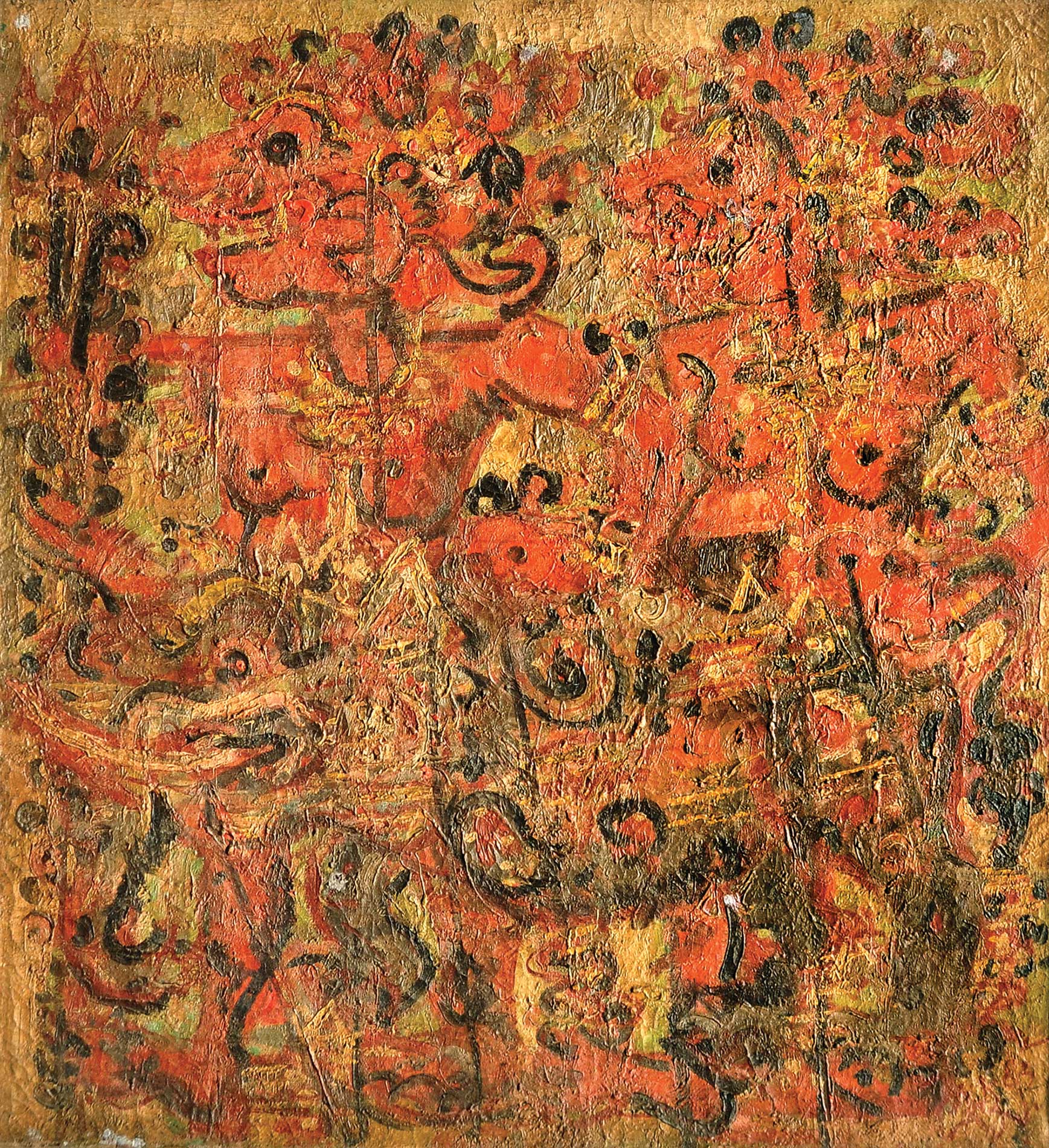 Generally the painting is in good condition. Canvas is in good condition. Very minor paint loss on upper right. Aging cracks on some areas mostly on the edges. No retouching was detected upon examination under ultraviolet light. The Panting is offered with frame.