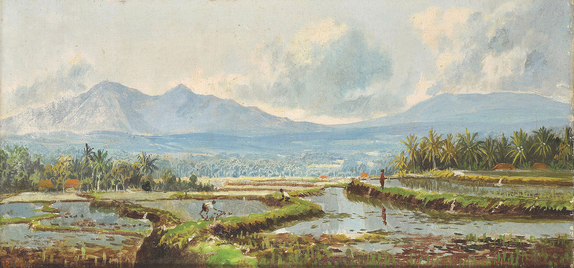 Please note that this report has been compiled by Larasati staff based solely on their observation on the work. Larasati specialists are not professional conservators; thus the report should be treated only as an expression of opinion and not as a statement of fact. We suggest that you consult your own restorer for a more thorough report. We remind you again that all work is sold 'as is' and should be viewed personally by you or your professional adviser before the sale to assess its condition.