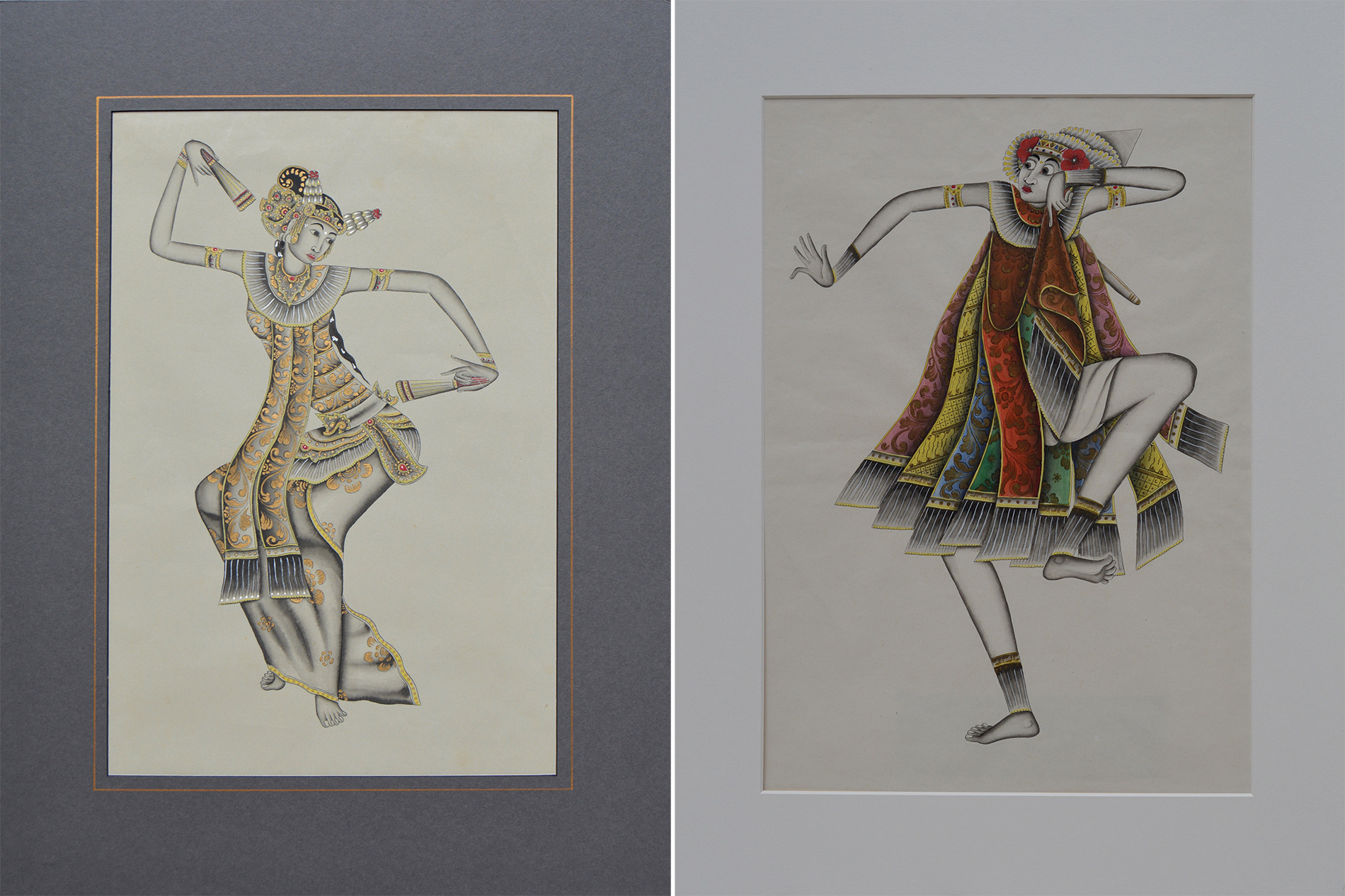The drawings are in good condition. There is no sign of foxing, tearing or watermark on the paper. Both drawings mounted on mat board