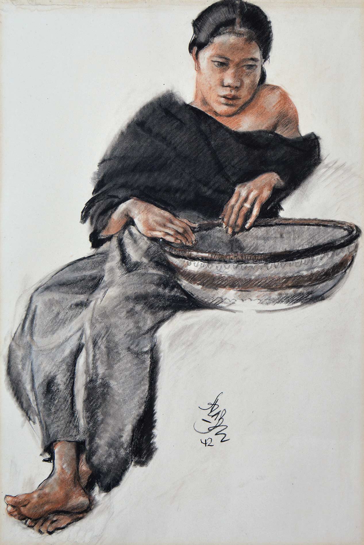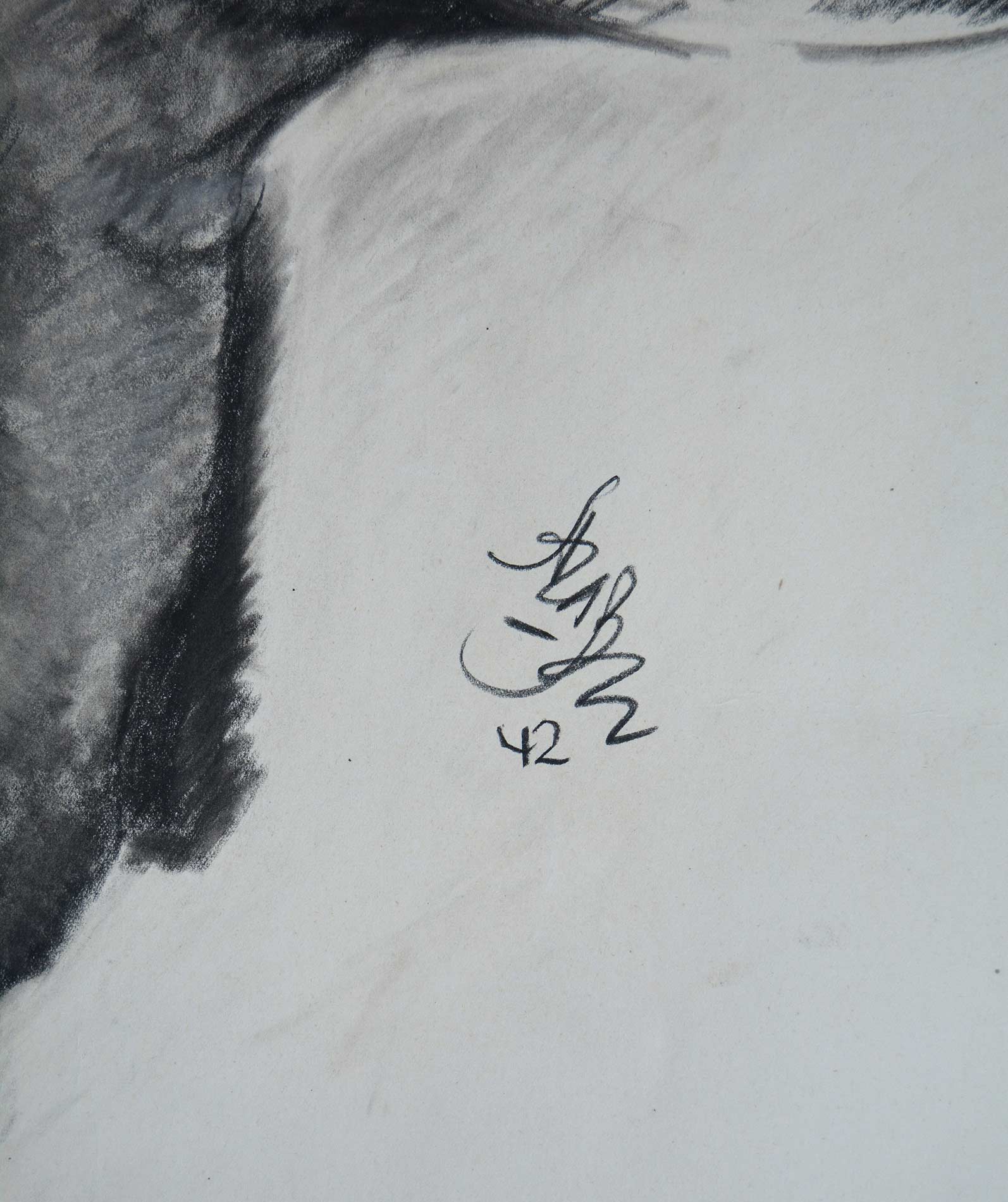 Drawing and paper generally is in good condition. Minor water mark and flaking paper on upper left edge. Drawing is offered with frame.
