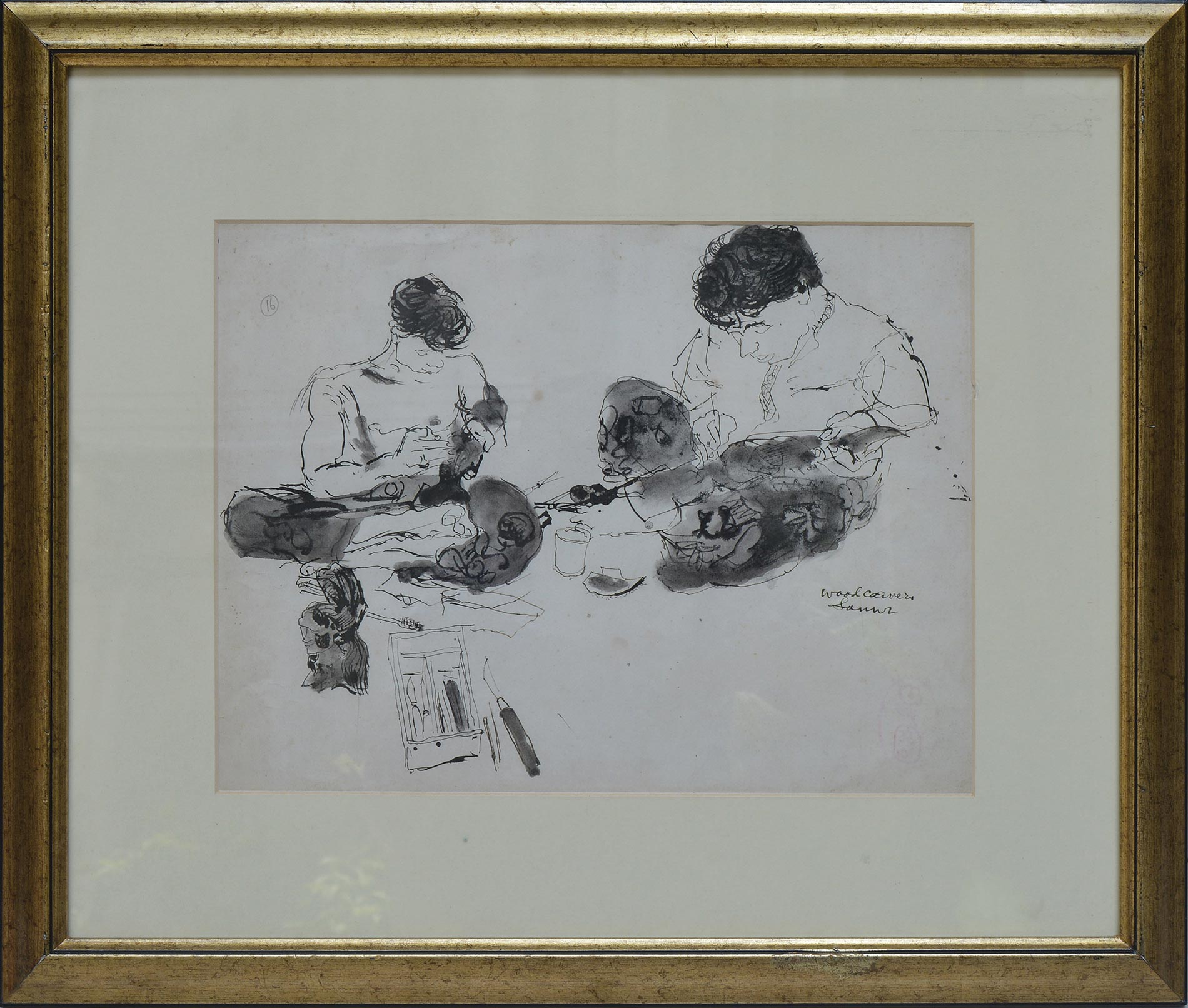 The drawing and paper are in good condition. There is no sign of foxing, tearing or watermark on the paper. Minor creases on lower left. The drawing is offered with frame.