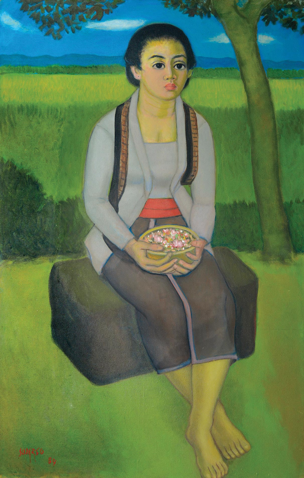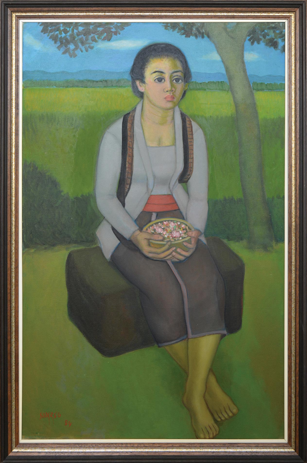 Please note that this report has been compiled by Larasati staff based solely on their observation on the work. Larasati specialists are not professional conservators; thus the report should be treated only as an expression of opinion and not as a statement of fact. We suggest that you consult your own restorer for a more thorough report. We remind you again that all work is sold 'as is' and should be viewed personally by you or your professional adviser before the sale to assess its condition.