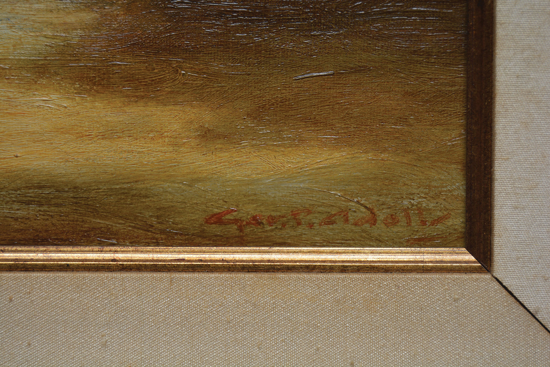 The painting is in good condition. The canvas is also in good condition with a clear and taut surface. No retouching was detected upon close examination. Very minor paint loss on lower left. The paint layers are in stable condition. The painting is offered with frame.