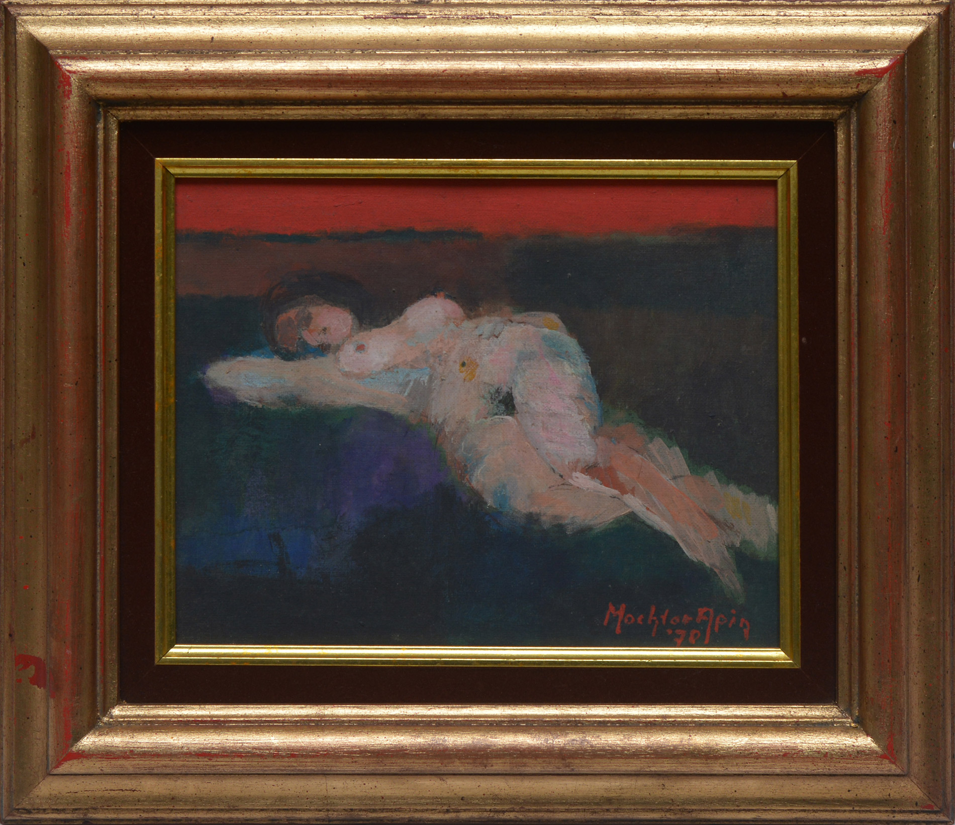 The painting is in good condition. The canvas is in plane, free of deformations and under adequate tension. Paint layers are intact and in stable condition. No retouching was detected under UV light examination. The painting is offered with frame.