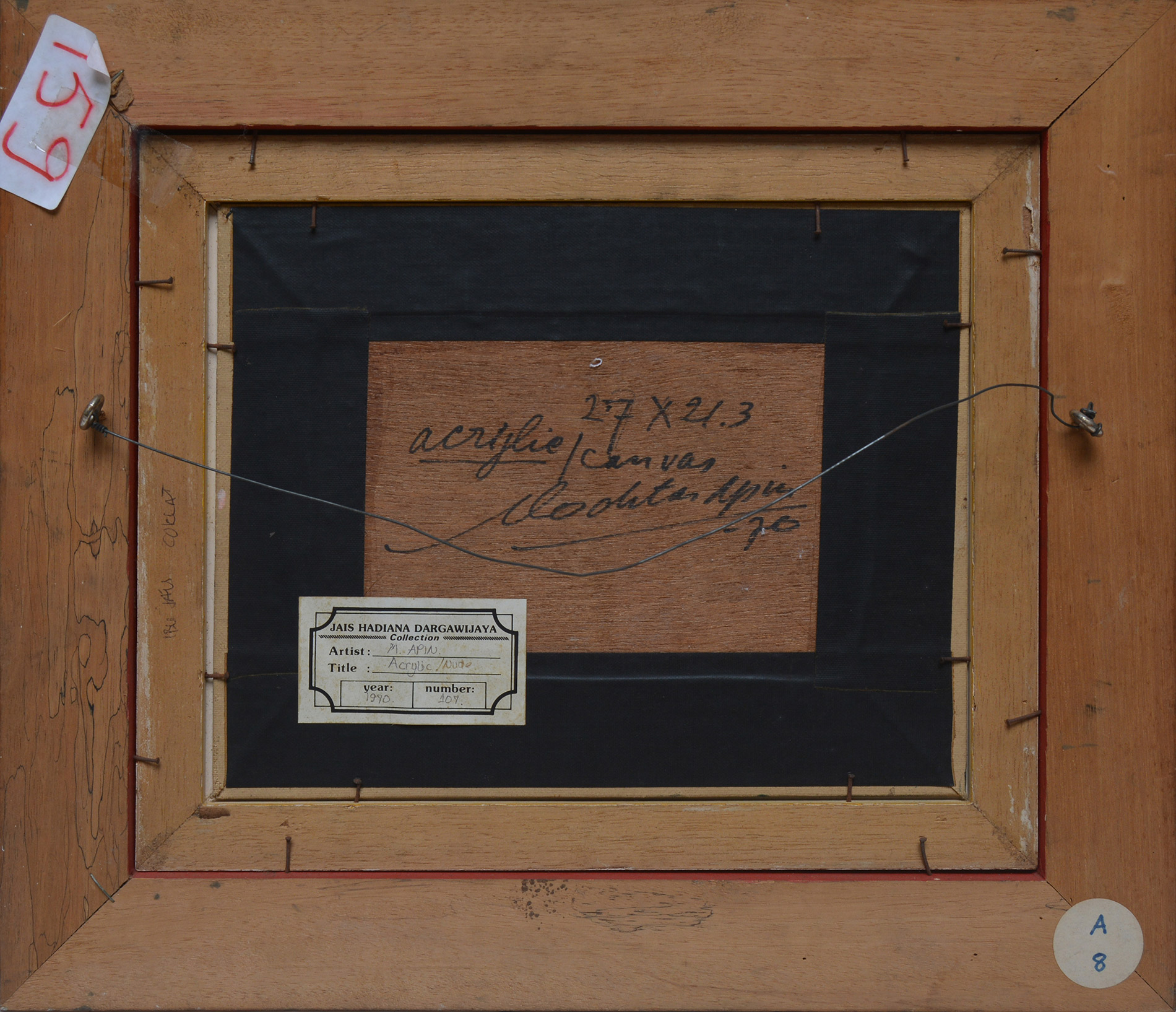 Please note that this report has been compiled by Larasati staff based solely on their observation on the work. Larasati specialists are not professional conservators; thus the report should be treated only as an expression of opinion and not as a statement of fact. We suggest that you consult your own restorer for a more thorough report. We remind you again that all work is sold 'as is' and should be viewed personally by you or your professional adviser before the sale to assess its condition.