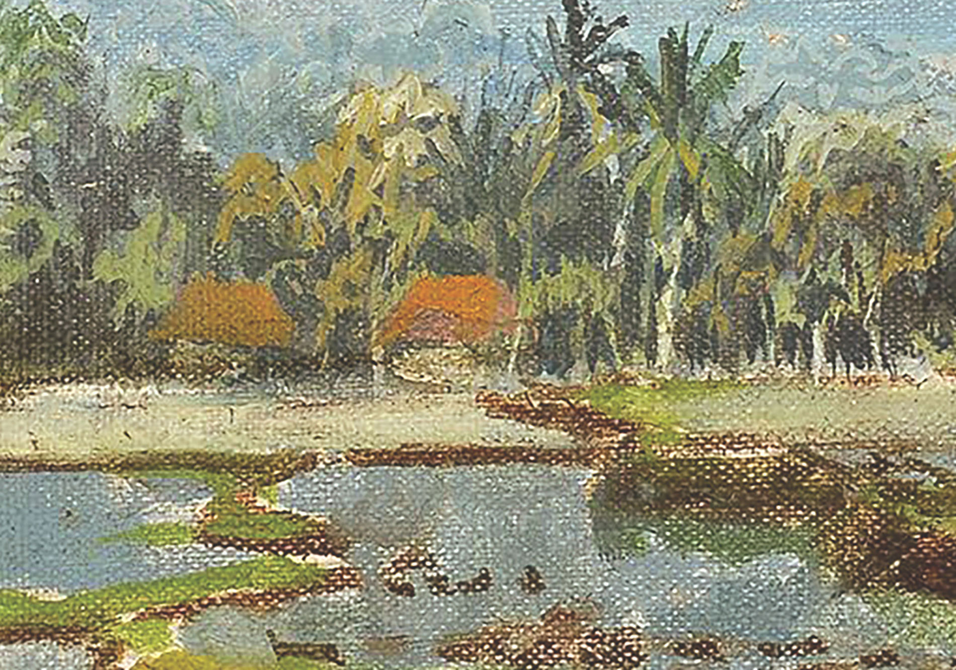 Painting is in good condition, canvas is also in good condition with clear and taut surface. Minor restoration has been done. Paint layers are intact and in stable condition. Painting is offered with frame.