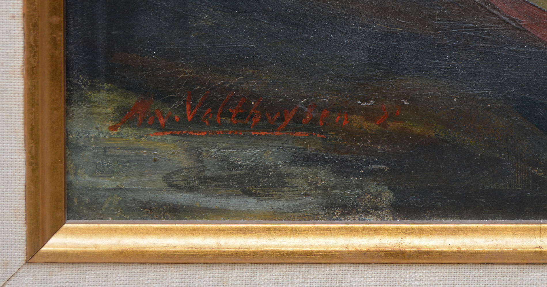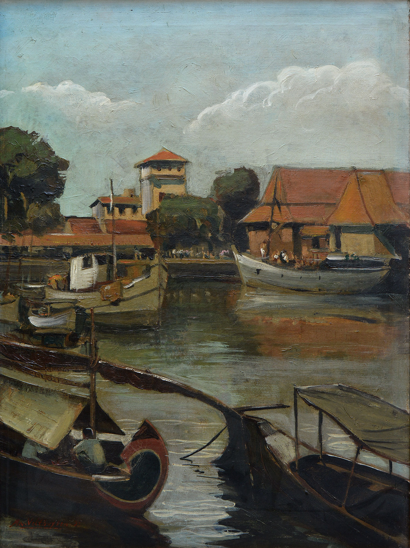 The painting is in good condition. The canvas is in plane, free of deformations and under adequate tension. Paint layers are intact and in stable condition. No retouching was detected under UV light examination. The painting is offered with frame.