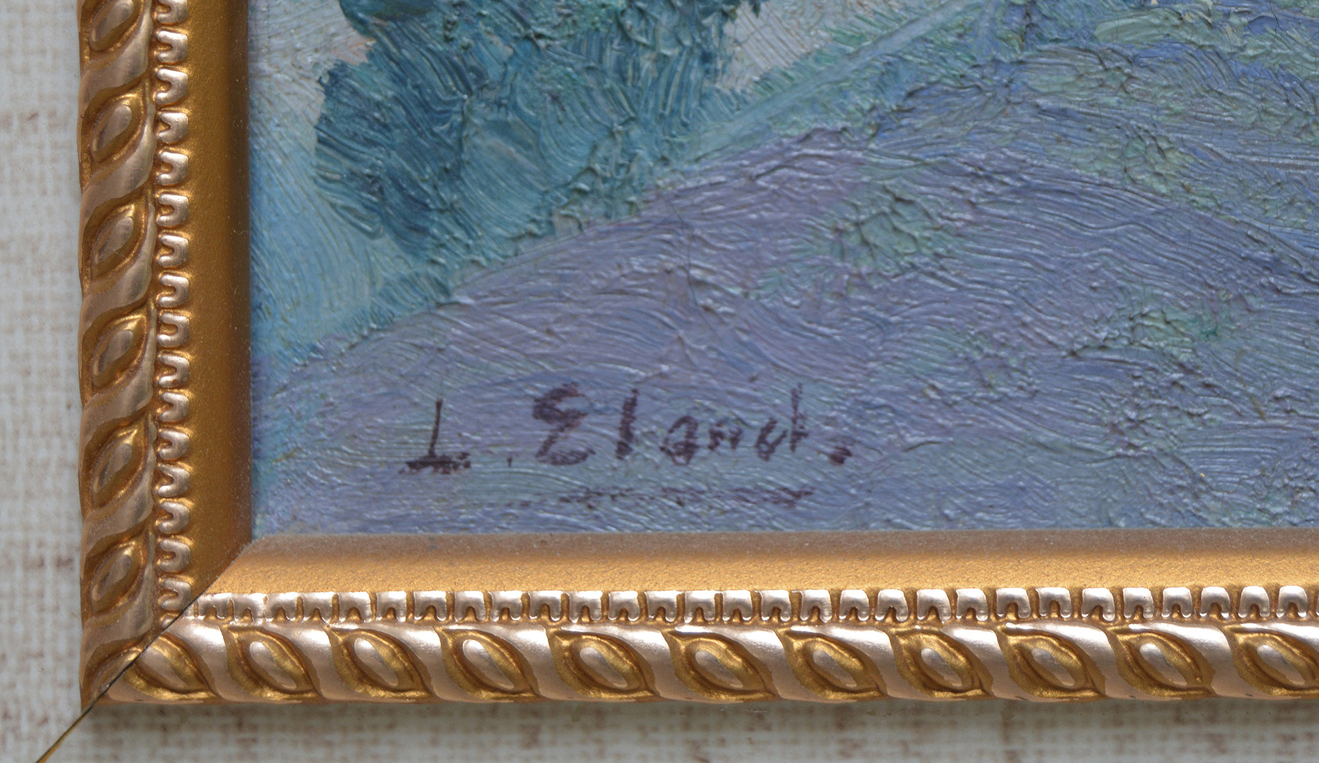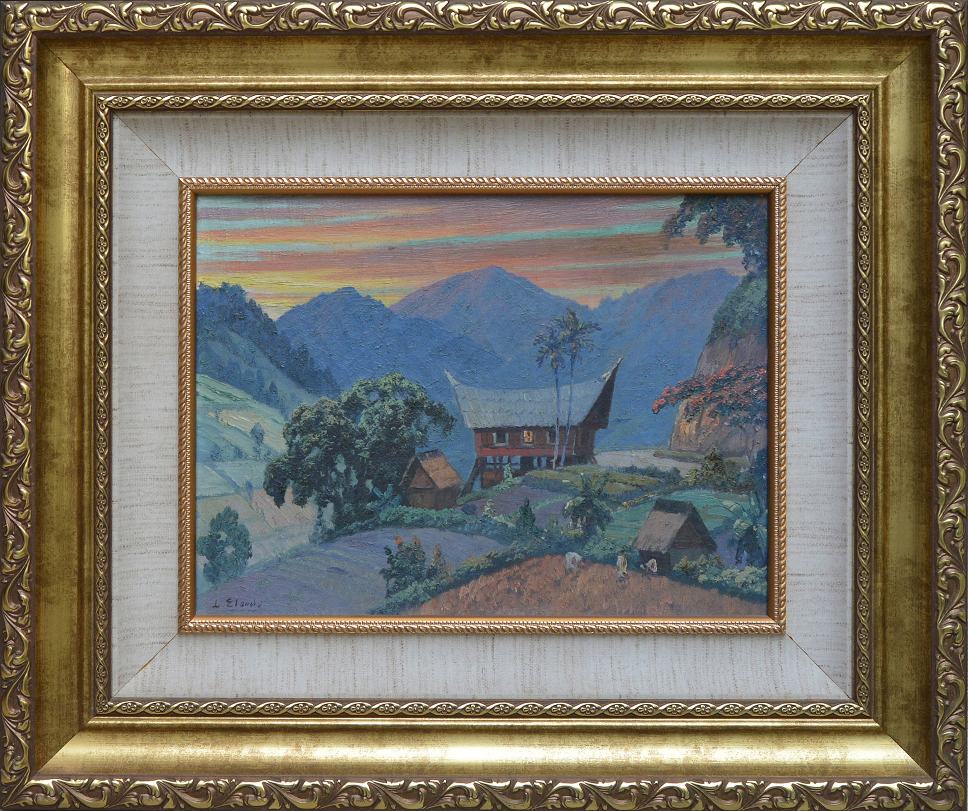The painting is in good condition. The canvas is in plane, free of deformations and under adequate tension. Minor aging cracks on upper right. Paint layers are intact and in stable condition. No retouching was detected under UV light examination. The painting is offered with frame.